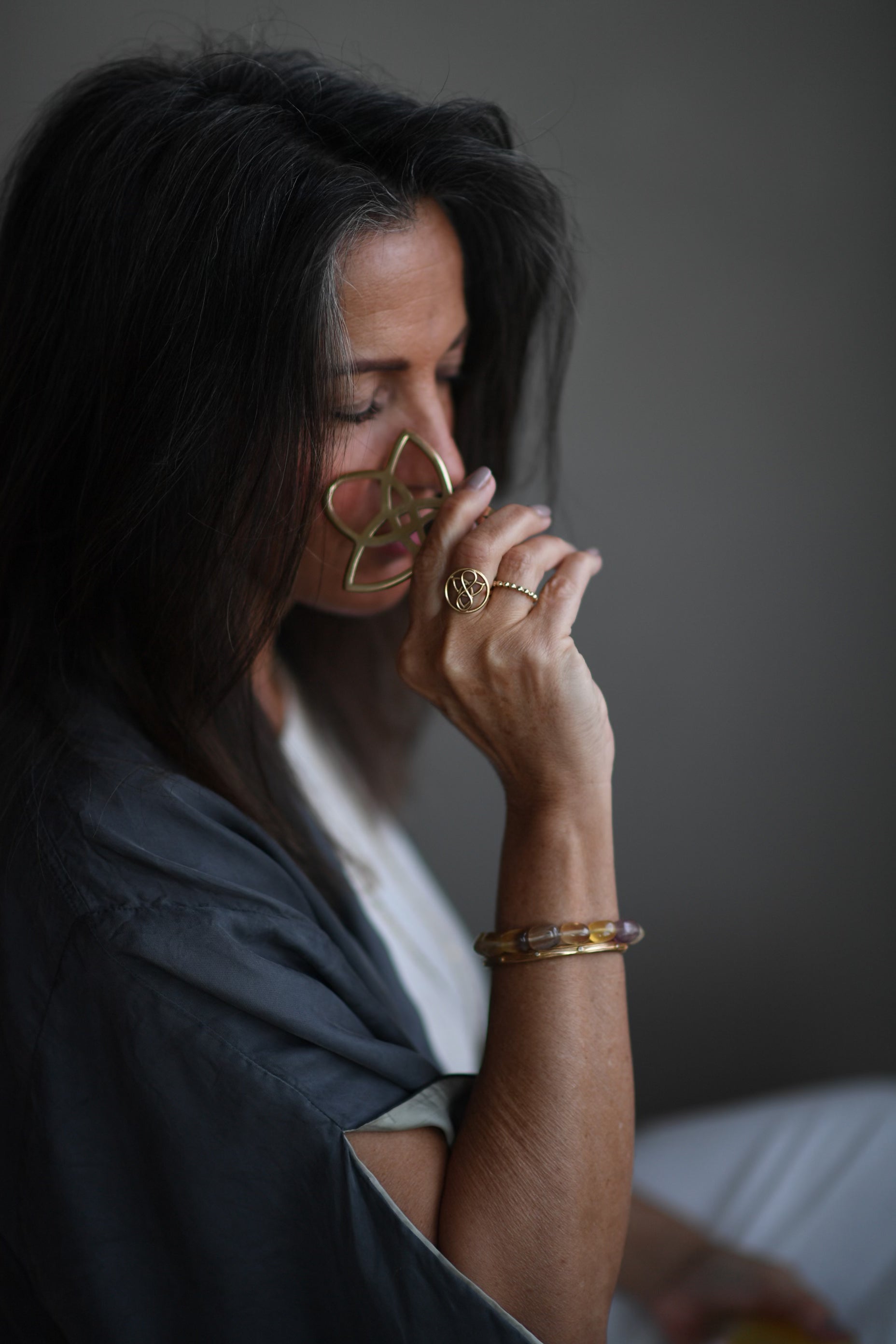 Copper plays a key role in many Ayurvedic rituals for wellbeing thanks to its natural healing benefits, antibacterial and rustproof qualities and also has corrosion-resistant properties. Copper has thermal conductivity, meaning that while our Ritual Gua Sha will start off cool, it will quickly heat, helping the skin to absorb any oils or serums used during a Gua Sha massage. Because of copper’s alkaline properties, placing it against your skin it will help to naturally balance your skin’s pH. Copper acts as an antioxidant and helps stimulate collagen production (collagen is a protein that determines the elasticity of your skin). It can help reduce the appearance of fine lines, wrinkles, age spots, scars and breakouts, and generally firm and smooth the skin for a youthful complexion, especially if used in combination with an antioxidant-rich product such as our Goddess Skin Serum.